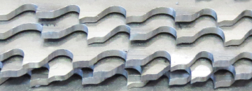 三、带锯条规格中的字母 每个厂家划分不同带锯条齿子形状用不一样的字母。 比如: 中汇公司NSS带锯条的SHB、SPL、SKL、SGL等 天田公司AMADA带锯条的SGLB、PRO等 这个英语字母代号是表示针对不同材料的切削。需要向厂家咨询。 也有厂家直接用8°角、0°角、平齿、尖齿等直接描述带锯条齿子的形状。 给大家上几张图片看一下不一样的齿尖的形状