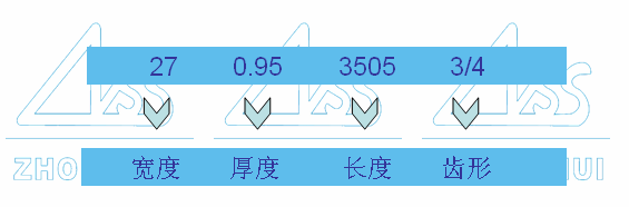 这就是我们常看到带锯条上印的规格形式27*3505*0.95*3/4P (******的P是表示“齿”,也有厂家用T表示。)