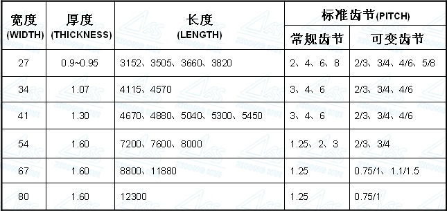 2、长度是可以定制的,基本的生产厂家都可以依据客户要求进行定制。而齿形也只有几种。常见的型号如下表所示: